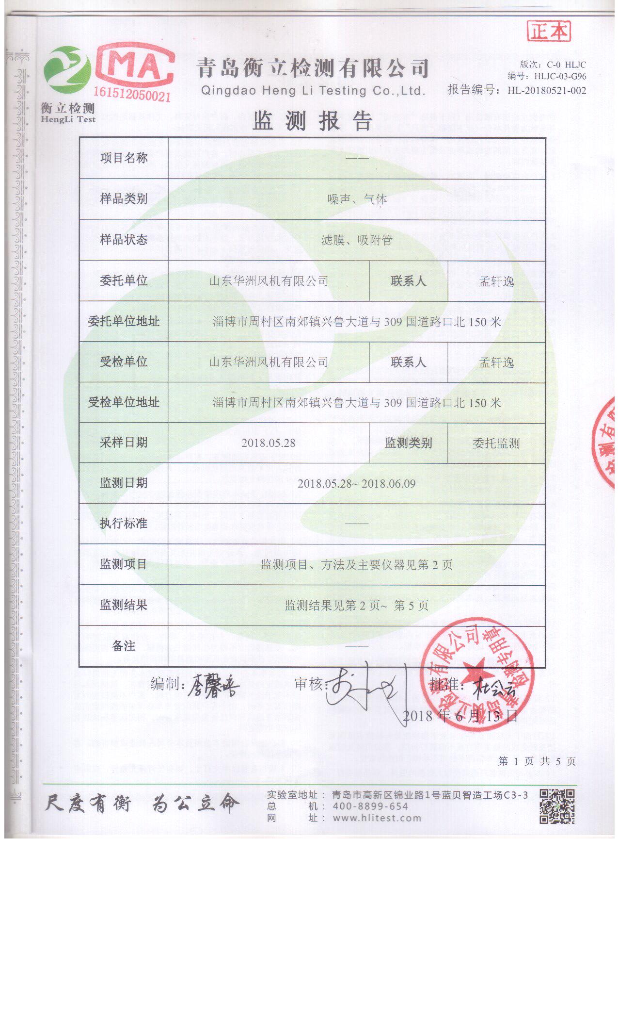 華洲風(fēng)機(jī)檢測(cè)報(bào)告